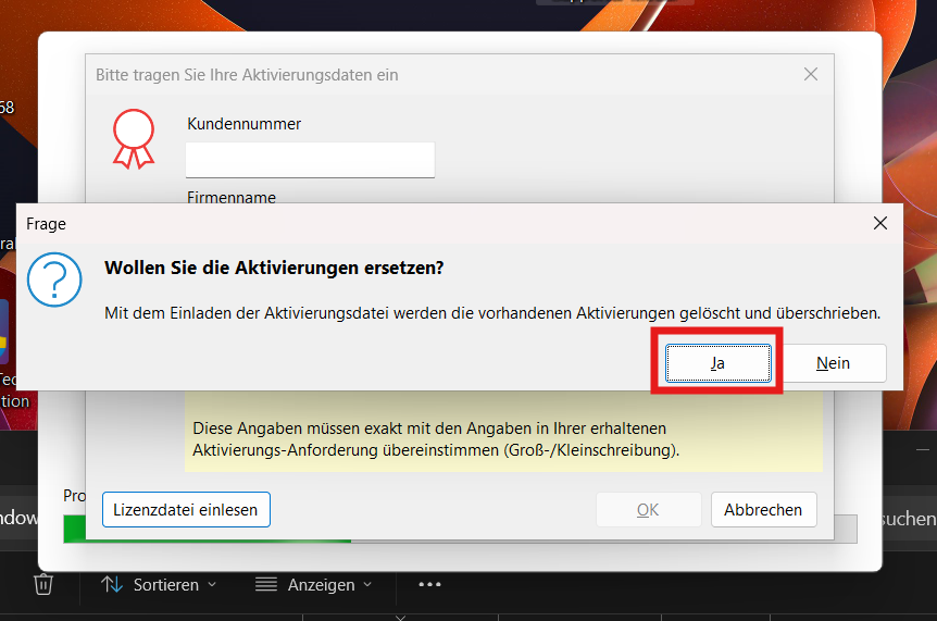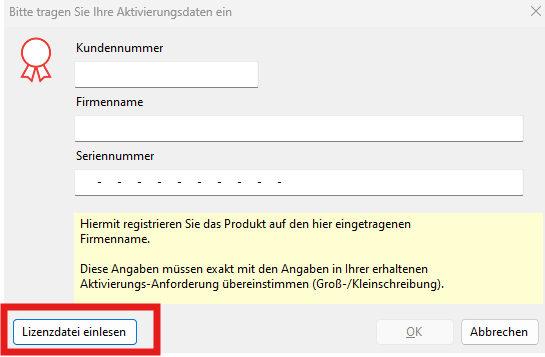 Hier den Pfad suchen wo die Lizenzdatei abgelegt wurde.