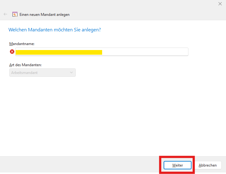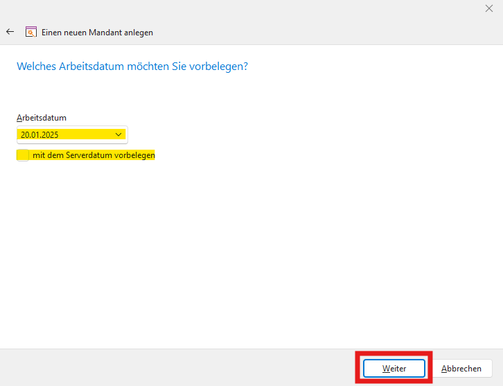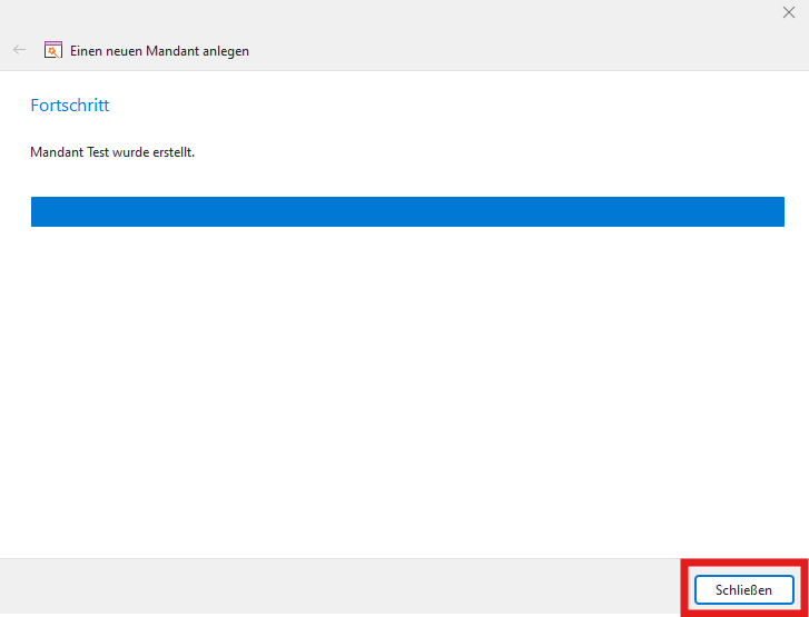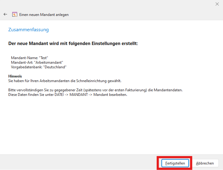 Zusammenfassung der Mandantendaten und Fertigstellen der Installation