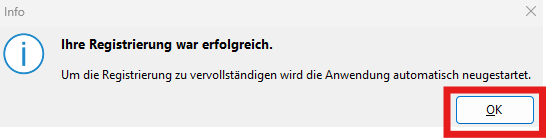 - Bei korrekter eingabe wird folgende Bestätigung erscheine.