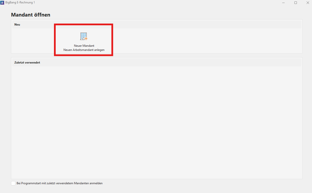 - Um in der BigBang einen Mandanten zu erstellen ist wie folgt vorzugehen: