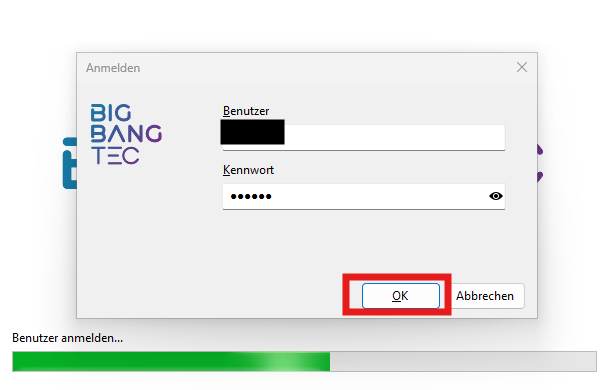 Doppelklick auf das Desktopsymbol um den BigBang ERP Client am Server zu starten.