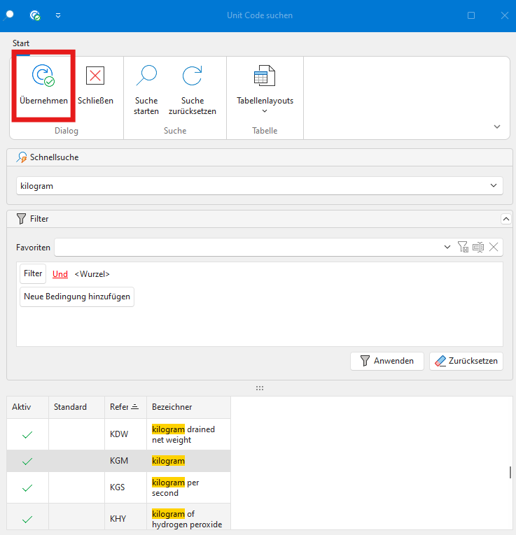- Anlegen der Import Unit Codes, verwendet für den E-Rechnungs-Eingang. Folgend ein Beispiel.