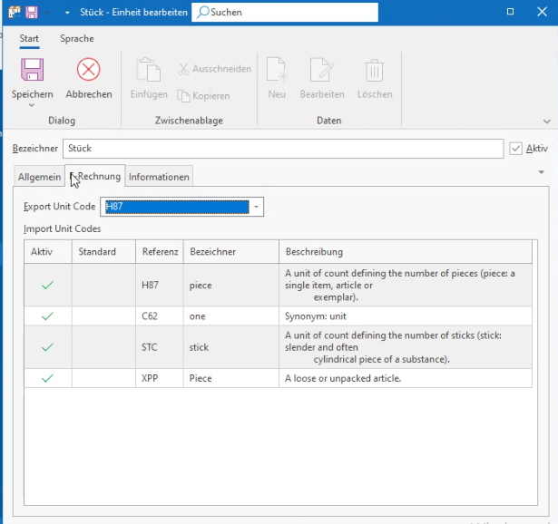 - Einheit -> Anpassen der Daten für E-Rechnung bei Einheiten